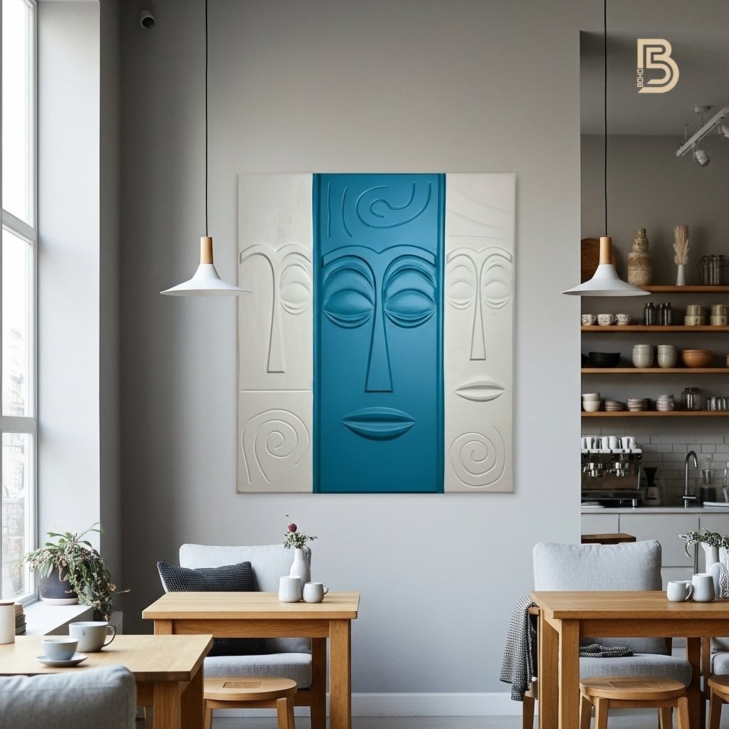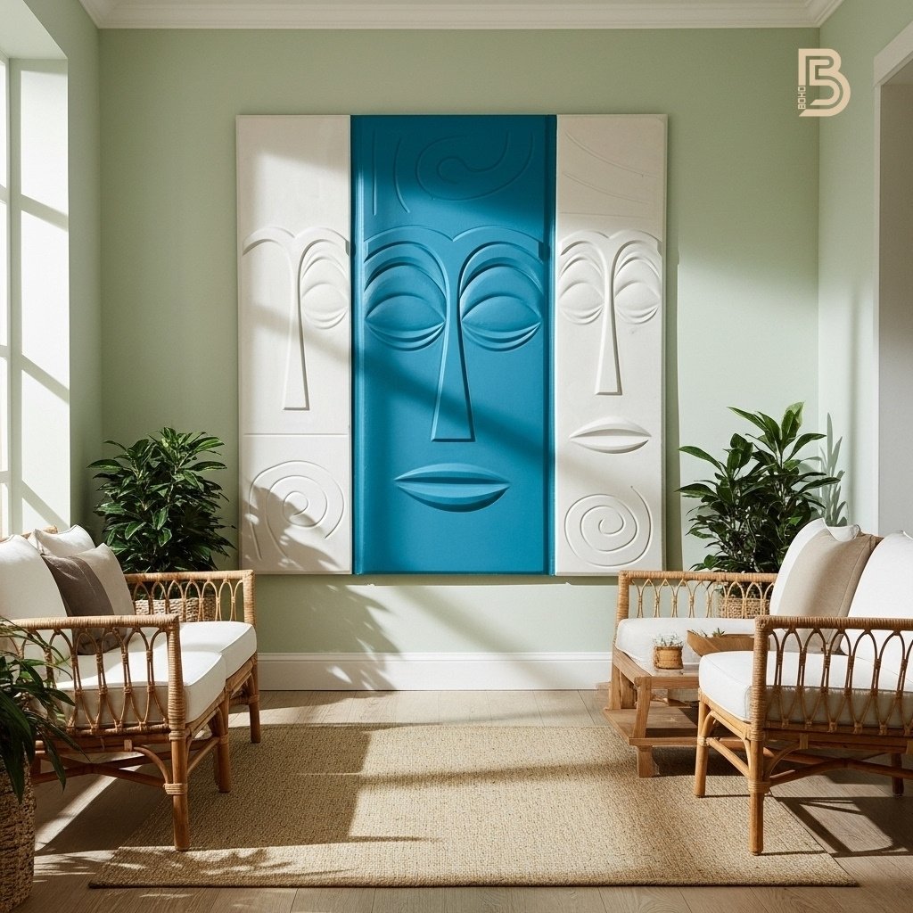 A sculptural art piece that combines abstract lines with a serene face.1x