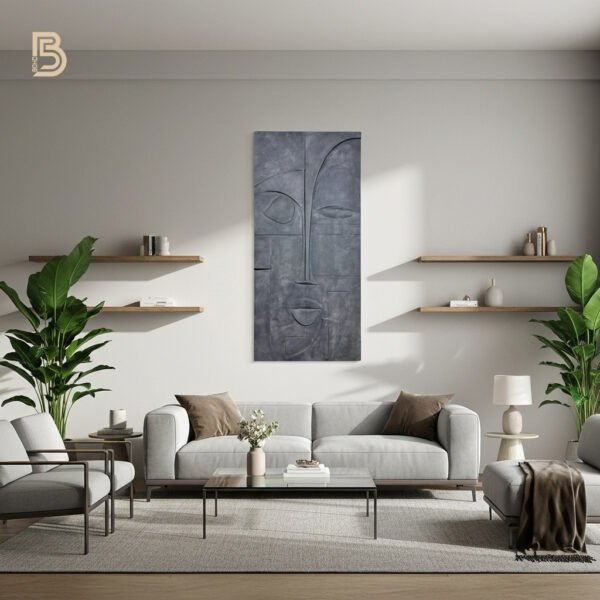 This striking art piece features a serene, embossed face, bringing a peaceful and artistic vibe to your bohemian decor.