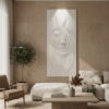 Stunning large 3D wall structure in pure matte white . features a delicate face enveloped by elegant, flowing curves.
