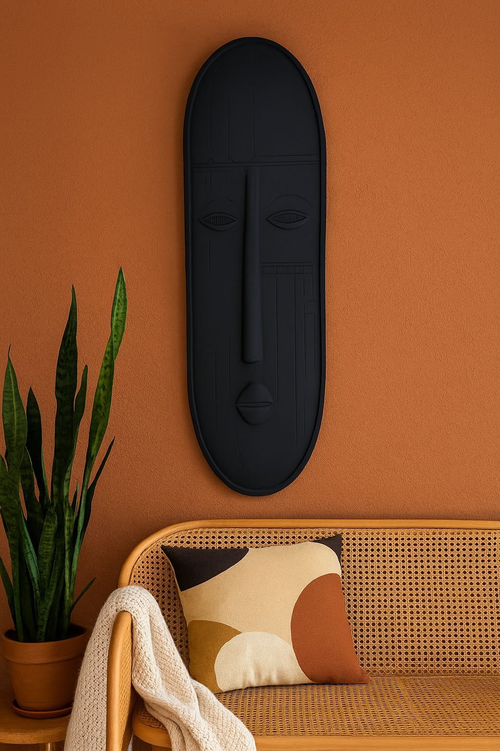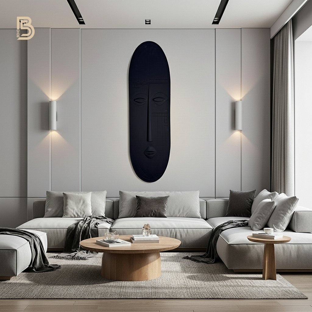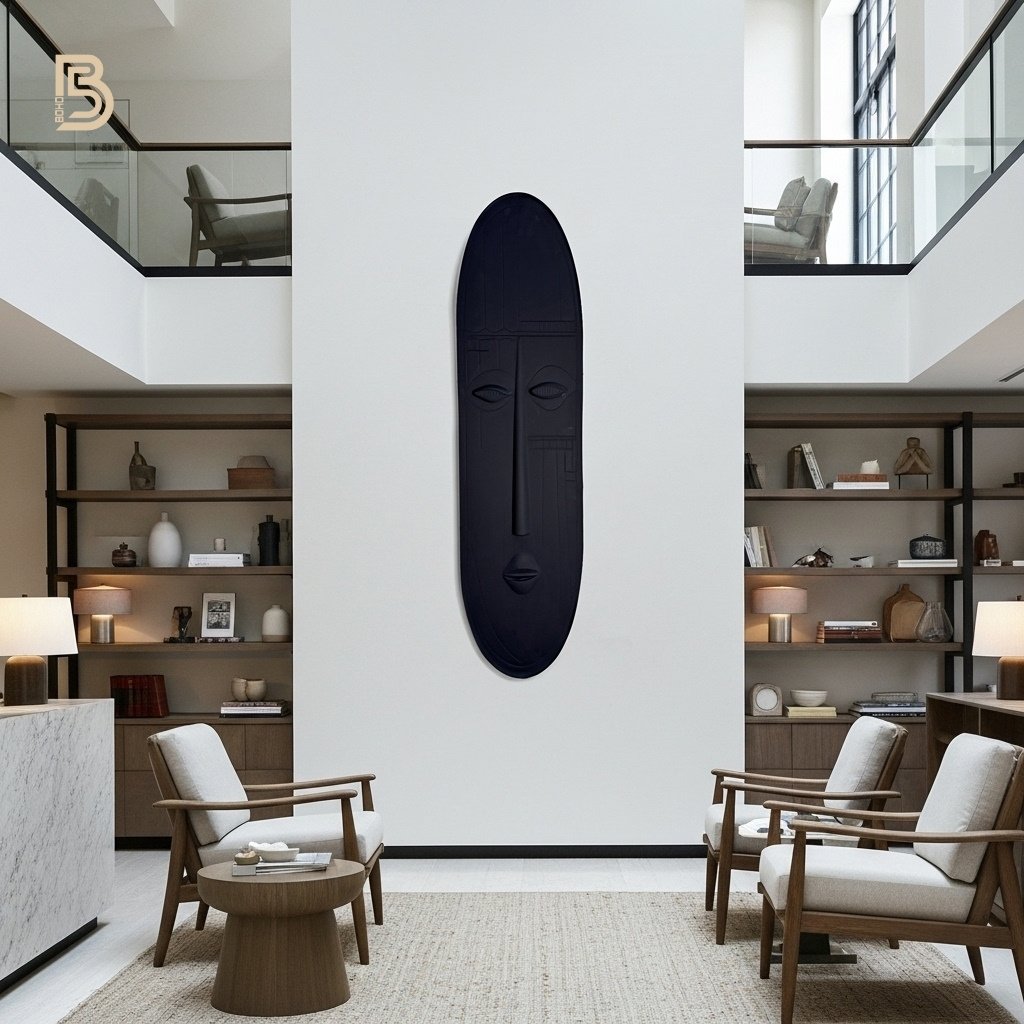 This unique, minimalist art piece combines clean lines and a powerful form, creating a dramatic focal point that adds a touch of cultural inspiration to any contemporary space. Weight 29.5 kg Dimensions 118 × 30 cm Color Black Glaze Finish Gloss