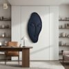 A unique wall sculpture redefines modern art with its minmalist,flowing silhouette .the rich ,dark finish creates powerful visual impact ,standing out boldoly agaist a neutral wall, its complements a wide range of interior styles .