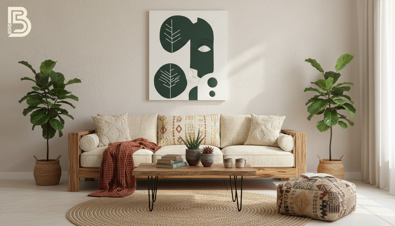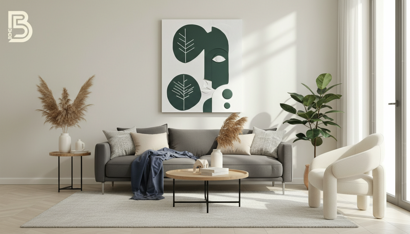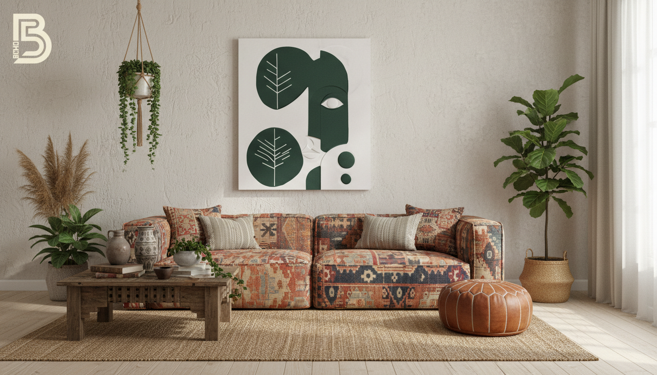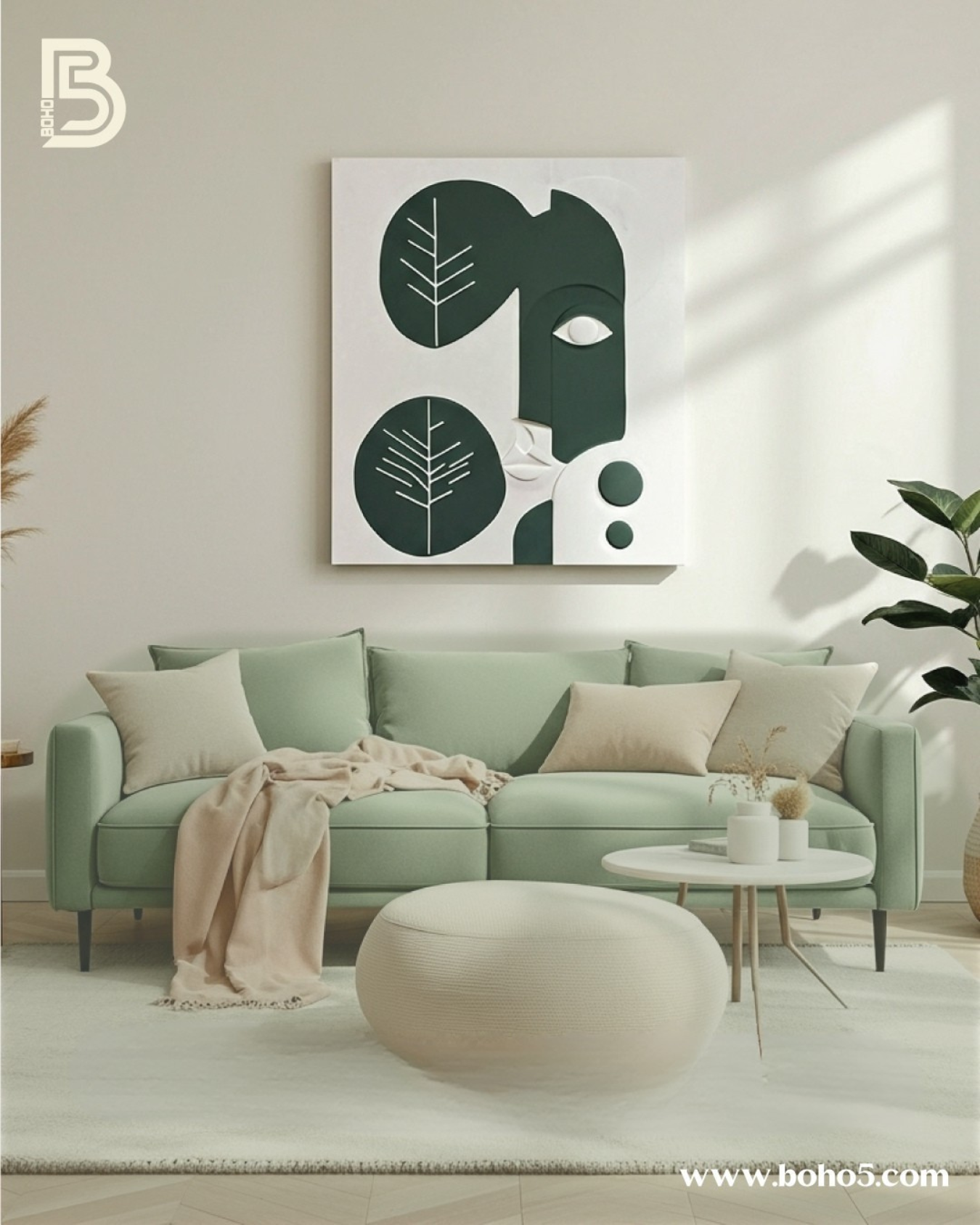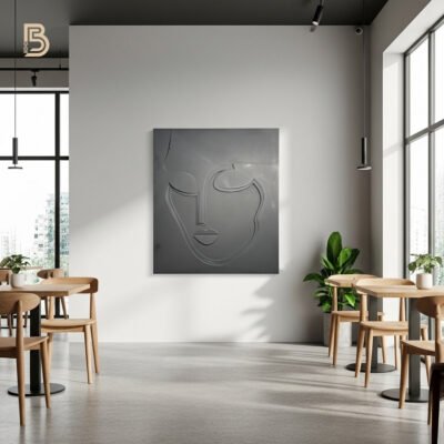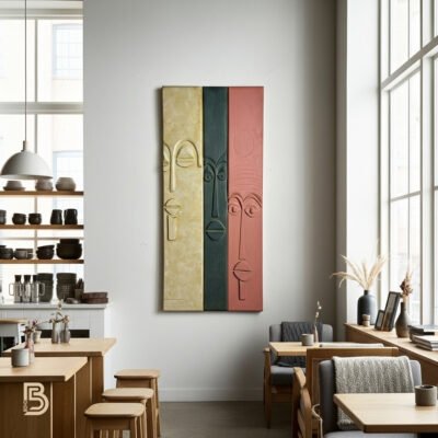 “Where nature meets humanity. The Botanical Soul is a captivating piece of relief art that blends minimalist facial features with abstract leaf motifs. Hand-sculpted in a soothing palette of deep olive and pure ivory, this textured canvas brings a harmonious and artistic atmosphere to your modern boho sanctuary.”