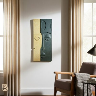 “Where nature meets humanity. The Botanical Soul is a captivating piece of relief art that blends minimalist facial features with abstract leaf motifs. Hand-sculpted in a soothing palette of deep olive and pure ivory, this textured canvas brings a harmonious and artistic atmosphere to your modern boho sanctuary.” L118*W100