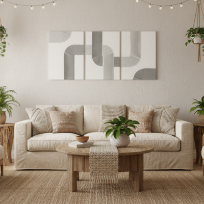 A striking, minimalist art piece that brings a touch of a modern bohemain style to any room.